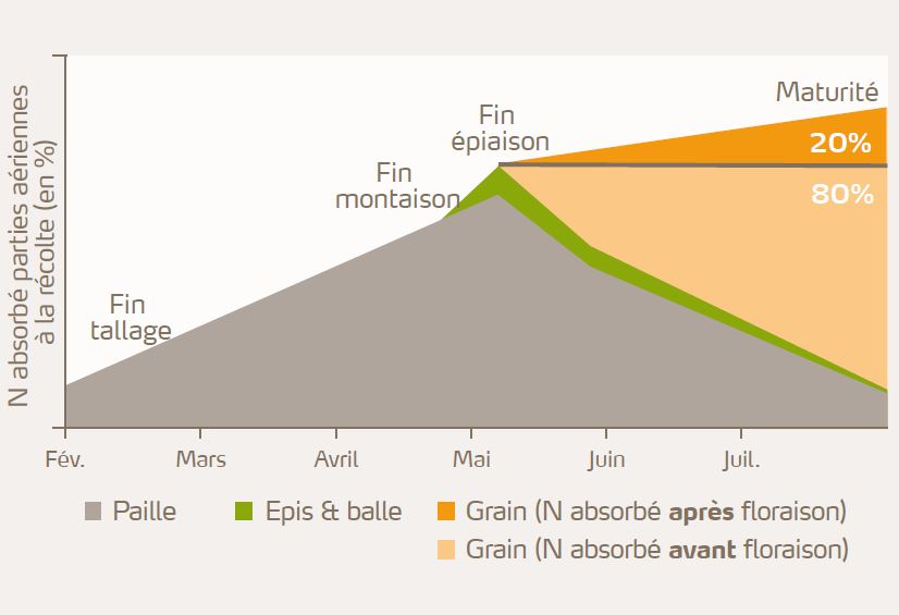Les 20% d’azote restant sont issus de l’absorption post- floraison.