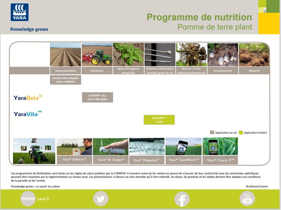 Important : ces programmes de fertilisation sont basés sur les règles de calcul publiées par le COMIFER. Avant de les mettre en oeuvre, assurez-vous de leur conformité avec les contraintes spécifiques pouvant être imposées au niveau local par la réglementation. Les préconisations ci-dessus ne sont données qu’à titre indicatif : les doses, les produits et les stades doivent être adaptés aux conditions de la parcelle et de l’année.