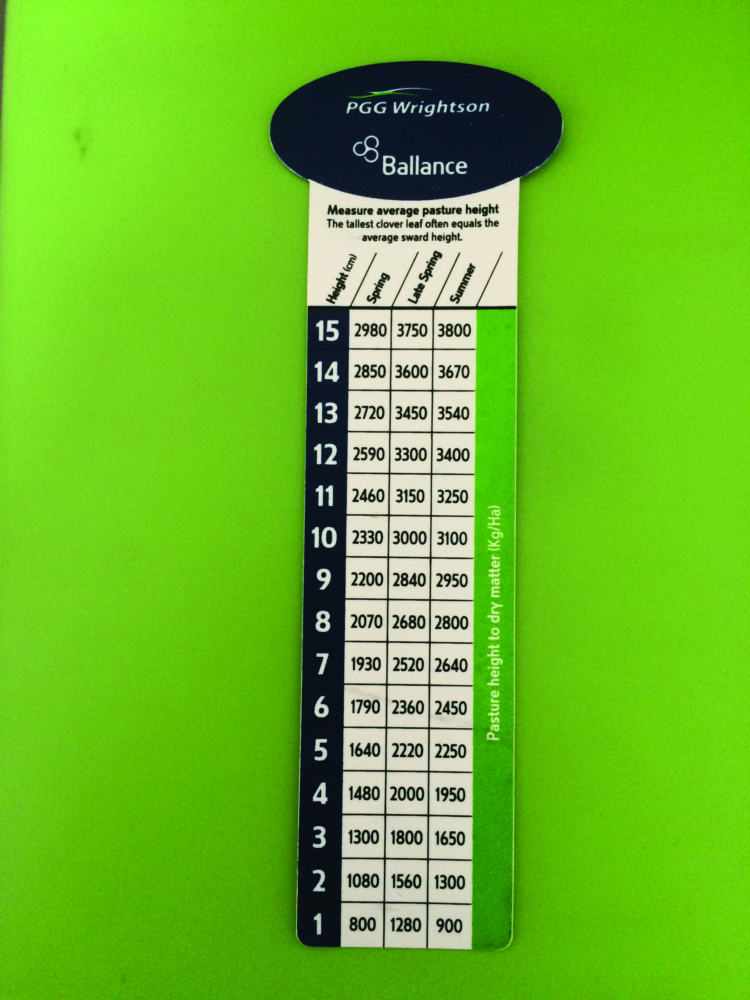 Les pâturages doivent être régulièrement évalués et correctement broutés pour tirer le meilleur parti de la valeur nutritionnelle qu’ils apportent, car celle-ci change au cours de la saison. Un suivi et une évaluation attentive confirment le bon stade de paissance ou quand apporter du foin ou de l’ensilage et quand la paissance doit cesser pour permettre la repousse. La hauteur de la couche herbeuse est un bon indicateur pratique à prendre en compte dans la gestion de la paissance pour une bonne exploitation de l’herbe et un rendement optimal du bétail. L’une des mesures les plus simples pour évaluer l’état de la couche herbeuse pour le pâturage est d’utiliser un bâton calibré pour établir la quantité d’herbe disponible, en kg de MS/ha. Cela suppose de parcourir la pâture en décrivant un « W », en prenant jusqu’à 40 mesures de hauteur aléatoires du couvert herbeux à des distances égales : par exemple, tous les cinq pas. La deuxième étape est d’évaluer la densité de la pâture. Elle peut consister en une simple évaluation visuelle : les pâturages à faible densité de talles sont en général de jeunes prairies âgées de 1 à 4 ans qui contiennent peu de graminées ou de trèfle formant des mottes dans le sous-étage. Les pâturages à moyenne densité de talles sont en général constitués d’un mélange de peuplements d’espèces, composées de fléole, d’ivraie, de fétuque et de trèfle.